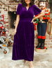 Featuring elegant retro A-line, this lady's stretchy v-neck velvet long dress is retro and cute in autumn or winter.