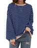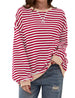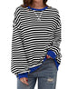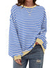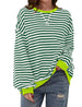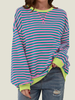 Brighten up your wardrobe with this eye-catching striped sweatshirt! Made from soft, comfortable fabric, it pairs easily with leggings or jeans. It also looks great layered under jackets, coats, vests, or cardigans, offering endless styling possibilities.