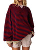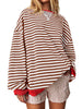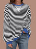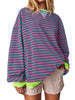 Brighten up your wardrobe with this eye-catching striped sweatshirt! Made from soft, comfortable fabric, it pairs easily with leggings or jeans. It also looks great layered under jackets, coats, vests, or cardigans, offering endless styling possibilities.